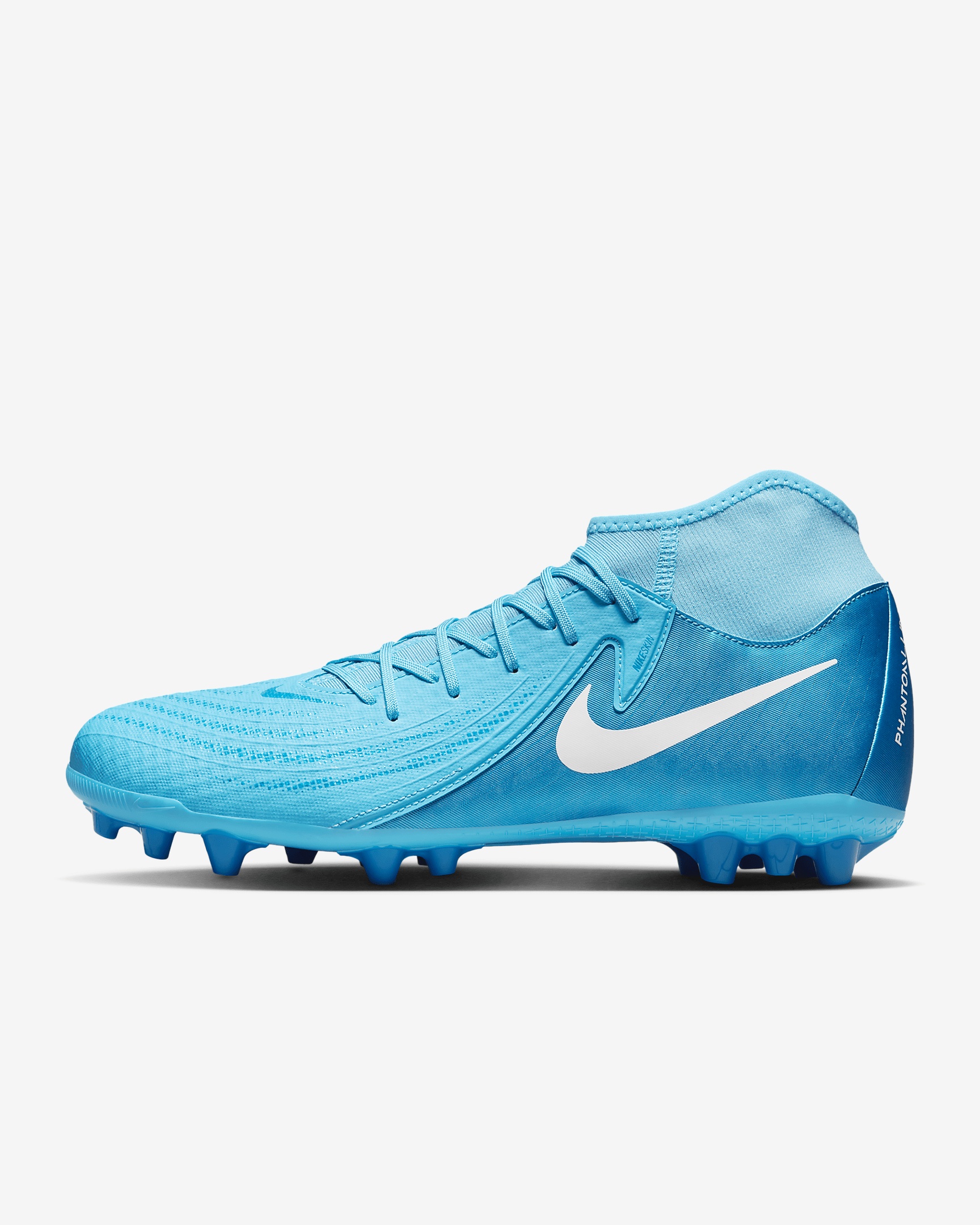Looking to take your game to the next level? The Phantom Luna 2 Academy helps put you in prime position of the net, whether you're the organizer, assister or finisher. The rest is up to you. Created with goals in mind, NikeSkin covers the striking area of the cleat while Nike Cyclone 360 traction helps guide your unscripted agility. Product Details - For use on longer, artificial-grass surfaces - Cushioned insole - Shown: Blue Fury/White - Style: FJ2585-400