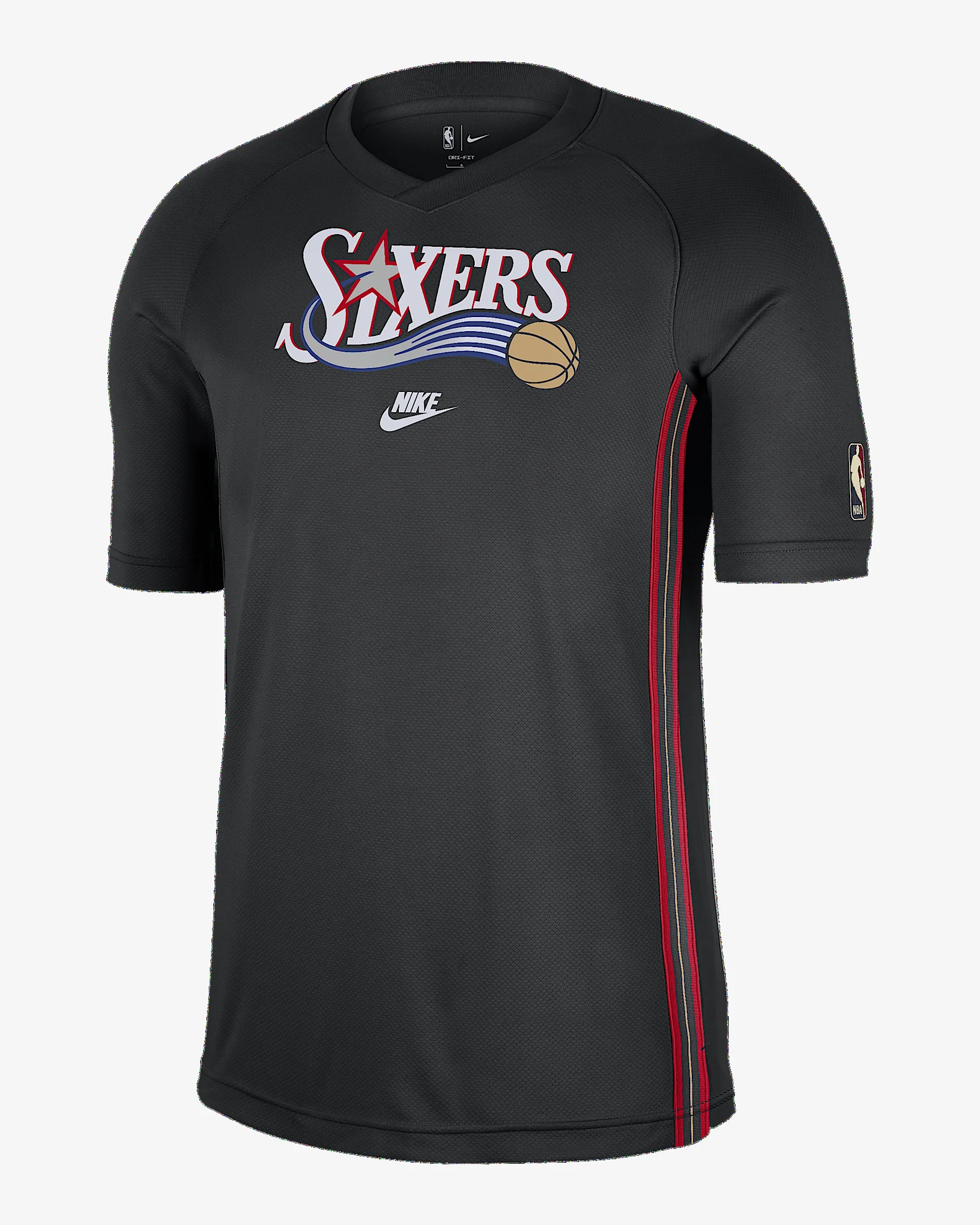 Rep your favorite franchise's rich roots in this Nike’s Hardwood Classics collection. It’s a nostalgic trip down memory lane, bringing back some of your fondest Philly 76ers moments. This short-sleeve top infuses sweat-wicking technology to help keep you cool and dry. Benefits - Nike Dri-FIT technology moves sweat away from your skin for quicker evaporation, helping you stay dry and comfortable. Product Details - 100% polyester - Machine wash - Imported - Shown: Black/White - Style: HQ6399-010 SIZE & FIT Standard fit: easy and traditional