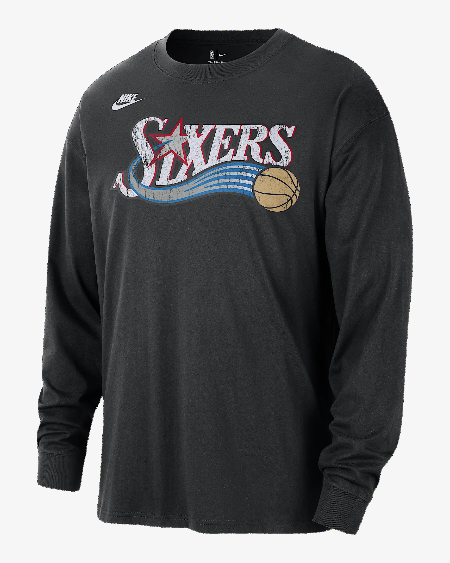 Rep the Philadelphia 76ers rich roots in this Nike’s Hardwood Classics collection. It’s a nostalgic trip down memory lane, bringing back some of your fondest 76ers moments. This long-sleeve t-shirt feels some and comes with a slight drape. Benefits - Midweight cotton fabric feels soft and has a slight drape. Product Details - Ribbed neckband and cuffs - 100% cotton - Machine wash - Imported - Shown: Black - Style: HV5696-010 SIZE & FIT Loose fit: roomy and relaxed