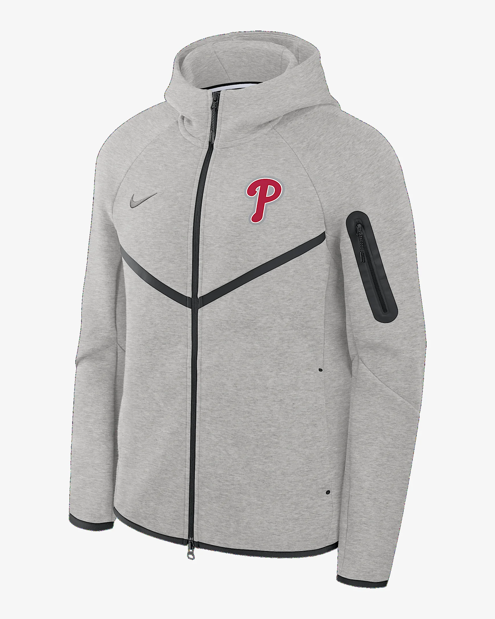 Featuring premium, heavyweight fleece fabric with a smooth feel on the inside and outside, this Tech Fleece Windrunner Jacket keeps you warm and comfortable in cold conditions as you support the Philadelphia Phillies. Product Details - Scuba hood without drawstring - Zippered pocket on left sleeve - 47% recycled polyester/42% cotton/11% organic cotton - Machine wash - Imported - Shown: Dark Grey Heather - Style: 05L4086NPP-J35