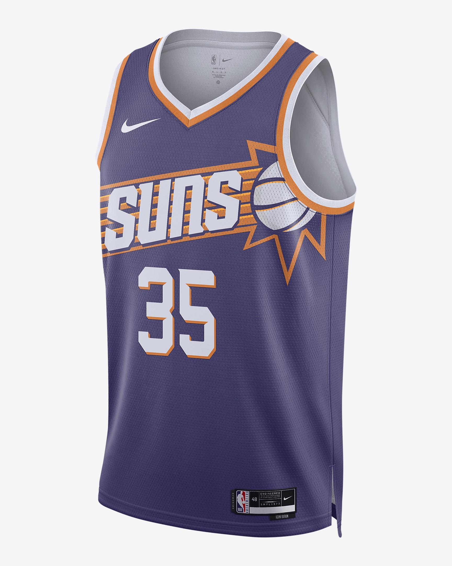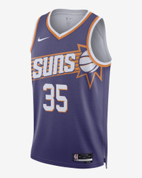 Every team has its true colors, an unmistakable identity that sets it apart from the rest of the league. Honoring a rich hoops heritage, this Phoenix Suns jersey is inspired by what the pros wear on the hardwood, from squad details to lightweight, sweat-wicking mesh. It helps keep you dry and cool on or off the court while you rep your favorite player and the game you love. Benefits - Nike Dri-FIT technology moves sweat away from your skin for quicker evaporation, helping you stay dry and comfortable. - Breathable mesh helps keep you cool on or off the court. Product Details - Twill player name and number - Jock tag at hem - Heat-applied graphics - 100% polyester - Machine wash - Imported - Shown: New Orchid - Style: DV4855-570 SIZE & FIT Standard fit: easy and traditional If you typically wear men's styles, please select your usual size. If you typically wear women's styles, please size down.
