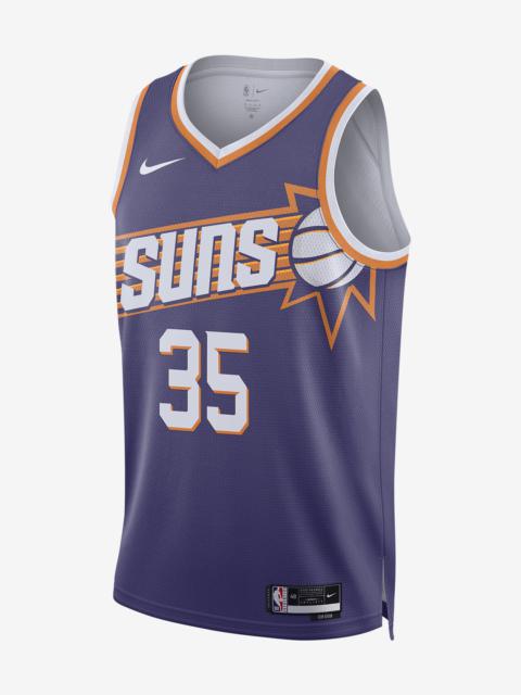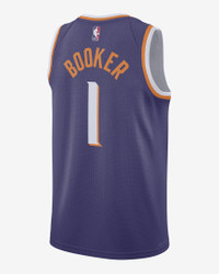 Every team has its true colors, an unmistakable identity that sets it apart from the rest of the league. Honoring a rich hoops heritage, this Phoenix Suns jersey is inspired by what the pros wear on the hardwood, from squad details to lightweight, sweat-wicking mesh. It helps keep you dry and cool on or off the court while you rep your favorite player and the game you love. Benefits - Nike Dri-FIT technology moves sweat away from your skin for quicker evaporation, helping you stay dry and comfortable. - Breathable mesh helps keep you cool on or off the court. Product Details - Twill player name and number - Jock tag at hem - Heat-applied graphics - 100% polyester - Machine wash - Imported - Shown: New Orchid - Style: DV4855-566 SIZE & FIT Standard fit: easy and traditional If you typically wear men's styles, please select your usual size. If you typically wear women's styles, please size down.