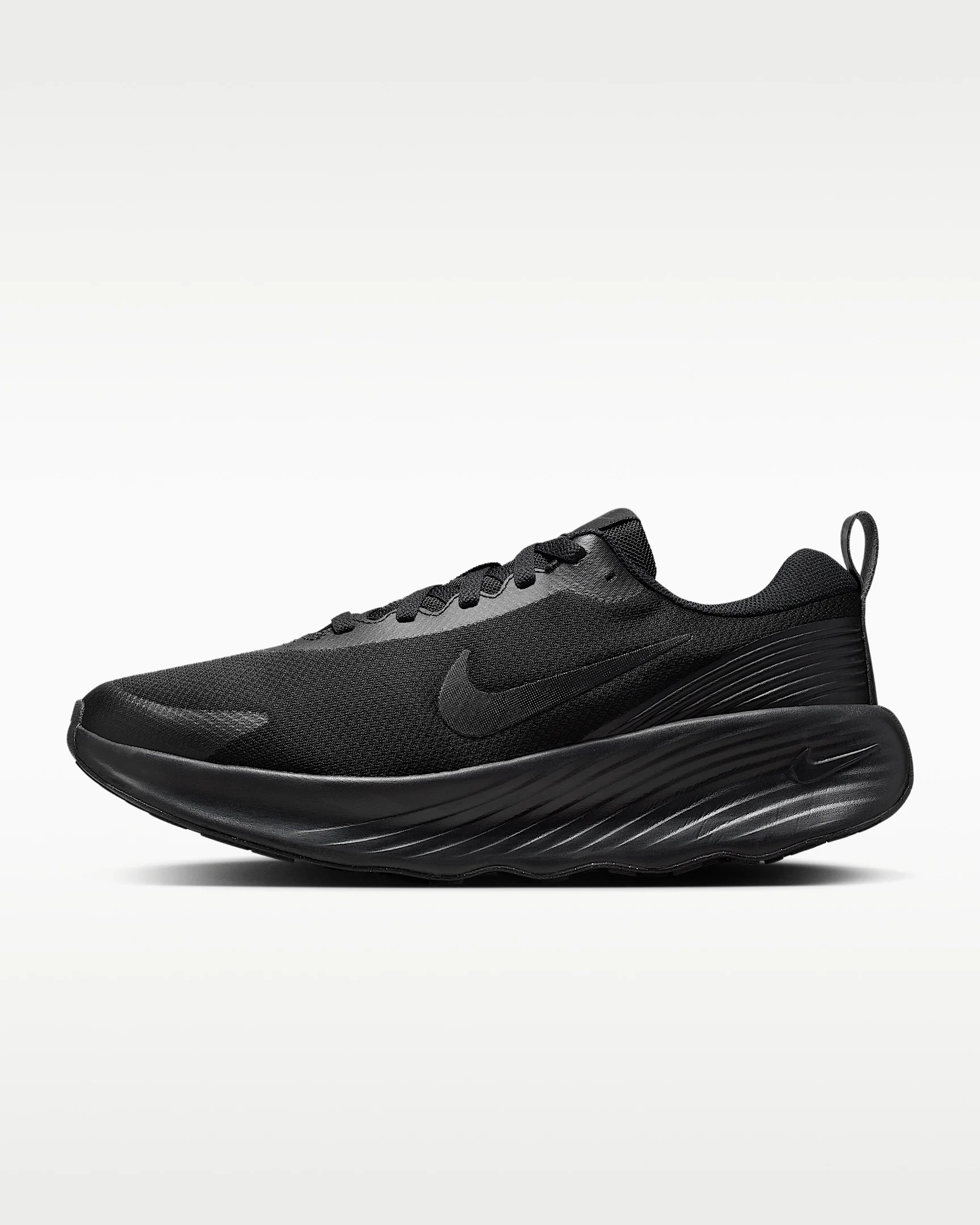 The Nike Promina makes every walk a soft ride. Its tall foam stack combined with a grooved rocker on the outsole provides high cushioning for all-day comfort. Benefits - High cushioning - Moderate stability - Moderate flexibility Product Details - Soft foam collar - Widened forefoot, arch and toe box - Durable outsole pattern for traction - Not intended for use as Personal Protective Equipment (PPE) - Shown: Black/Dark Smoke Grey - Style: FV5285-001