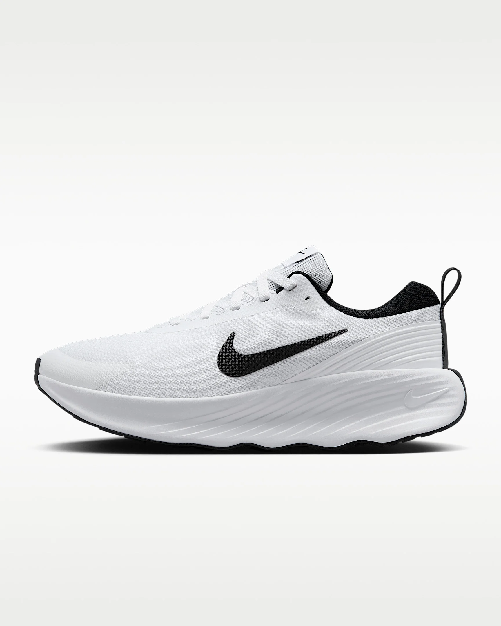 The Nike Promina makes every walk a soft ride. Its tall foam stack combined with a grooved rocker on the outsole provides high cushioning for all-day comfort. Benefits - High cushioning - Moderate stability - Moderate flexibility Product Details - Soft foam collar - Widened forefoot, arch and toe box - Durable outsole pattern for traction - Not intended for use as Personal Protective Equipment (PPE) - Shown: White/Black - Style: FV5285-101