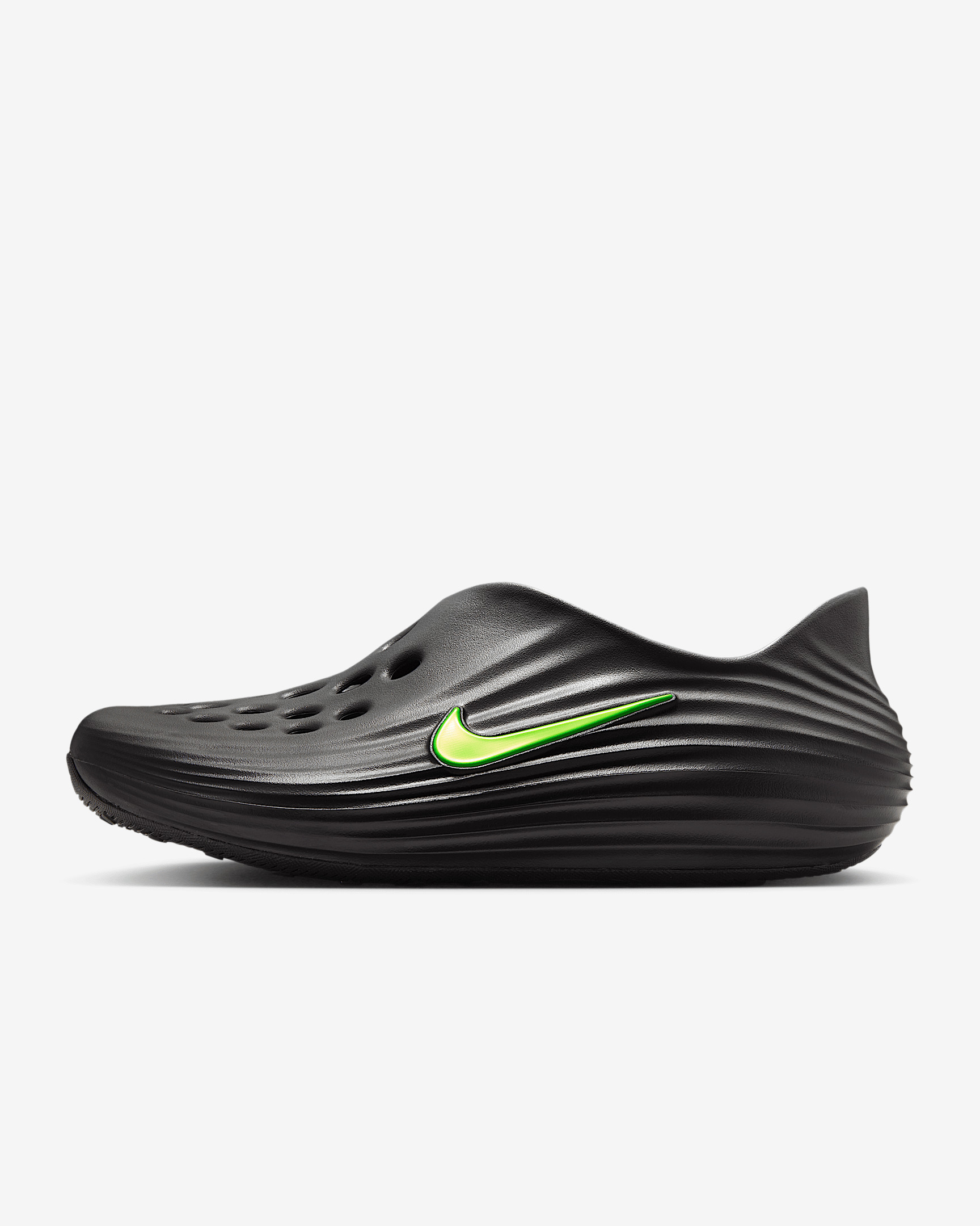 Give your feet a rest. Made with soft and responsive ReactX foam, the Rejuven8 uses some of our best tech to create a recovery shoe so comfortable you'll want to wear it every day. Benefits - ReactX upper and midsole surround your feet in soft, responsive comfort. - Sticky rubber outsole adds grip even on slick surfaces. - Extra room at the forefoot helps accommodate various foot widths. - Ventilation holes help allow for breathability. Product Details - Shown: Black/Cool Grey/Volt - Style: HV5060-003 SIZE & FIT If you wear a half size, we recommend ordering the size up