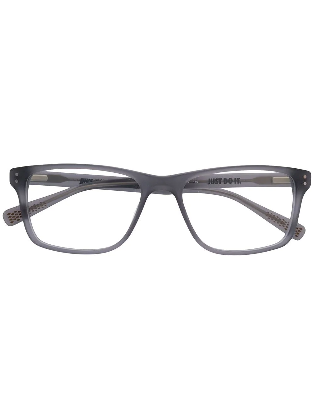 rectangular frame glasses Dark grey rectangular frame glasses from Nike featuring rectangular frames, straight arms with angled tips and a logo to the arm. This item comes with a protective case. Made in Italy Composition Acetate 100% SIZE & FIT Measurement Bridge Width 0.66 in(1.7 cm) Lens Diameter 2.12 in(5.4 cm) Total Width 5.47 in(13.9 cm) Arm Length 5.51 in(14 cm) Washing instructions MARCHON