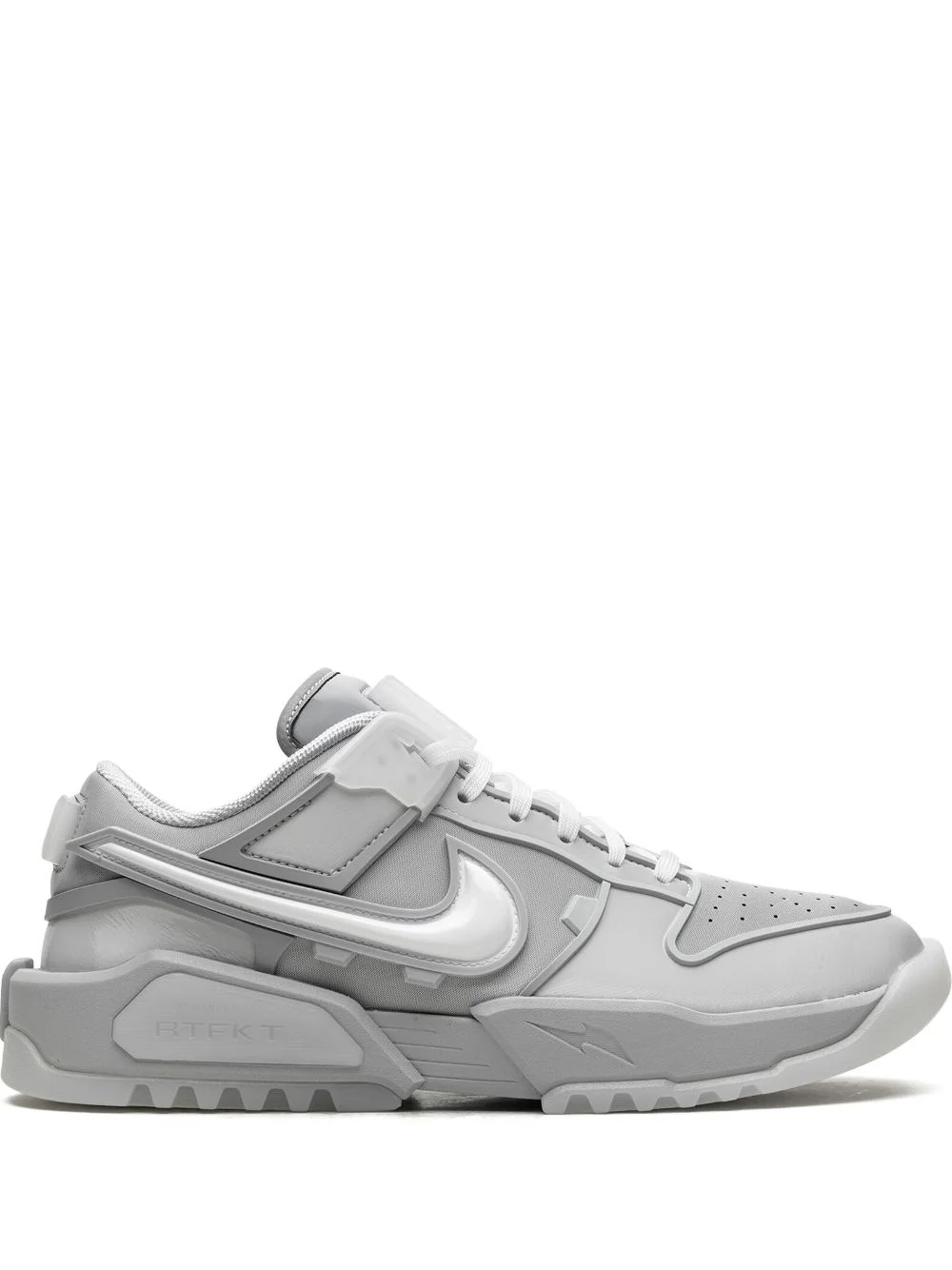 x RTKFT Dunk Genesis Low "Ghost (Edition of 8461)" sneakers Highlights - Light grey - Mesh design - Nfc chip - Contrasting branded heel counter - Detachable modular pieces - Signature swoosh logo detail - Perforated toebox - Round toe - Padded ankle - Signature zoom air unit - Translucent rubber sole - These styles are supplied by a premium and authenticated sneaker marketplace. stocking only the most sought-after footwear, they source and curate some of the most hard to find sneakers from around the world. Imported Composition Outer: Artificial Leather 100%, Fabric 100% Lining: Fabric 100% Sole: Rubber 100%