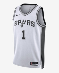 With a white background, the Association Edition Jersey is a common thread shared by every team in the NBA. This San Antonio Spurs jersey is inspired by what the pros wear on the hardwood, from team colors and graphics to lightweight, sweat-wicking mesh. It helps keep you dry and cool on or off the court while you rep your favorite player and the game you love. Benefits - Nike Dri-FIT technology moves sweat away from your skin for quicker evaporation, helping you stay dry and comfortable. - Breathable mesh helps keep you cool on or off the court. Product Details - Twill player name and number - Heat-applied graphics - Jock tag at hem - 100% polyester - Machine wash - Imported - Shown: White - Style: DN2094-104 SIZE & FIT Standard fit: easy and traditional If you typically wear men's styles, please select your usual size. If you typically wear women's styles, please size down.