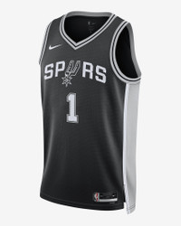 Every team has its true colors, an unmistakable identity that sets it apart from the rest of the league. Honoring a rich hoops heritage, this San Antonio Spurs jersey is inspired by what the pros wear on the hardwood, from squad details to lightweight, sweat-wicking mesh. It helps keep you dry and cool on or off the court while you rep your favorite player and the game you love. Benefits - Nike Dri-FIT technology moves sweat away from your skin for quicker evaporation, helping you stay dry and comfortable. - Breathable mesh helps keep you cool on or off the court. Product Details - Twill player name and number - Heat-applied graphics - Jock tag at hem - 100% polyester - Machine wash - Imported - Shown: Black - Style: DN2022-015 SIZE & FIT Standard fit: easy and traditional If you typically wear men's styles, please select your usual size. If you typically wear women's styles, please size down.