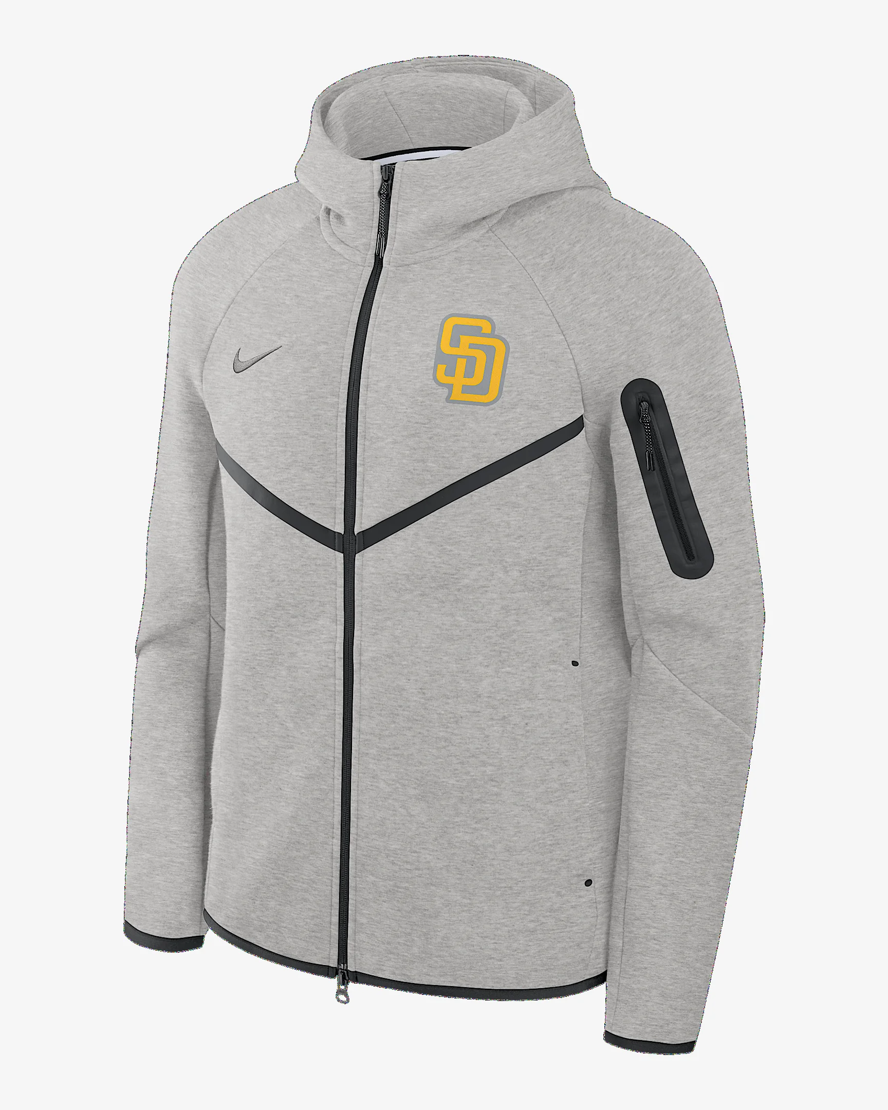 Featuring premium, heavyweight fleece fabric with a smooth feel on the inside and outside, this Tech Fleece Windrunner Jacket keeps you warm and comfortable in cold conditions as you support the San Diego Padres. Product Details - Scuba hood without drawstring - Zippered pocket on left sleeve - 47% recycled polyester/42% cotton/11% organic cotton - Machine wash - Imported - Shown: Charcoal Heather - Style: 05L4086NPYP-J35