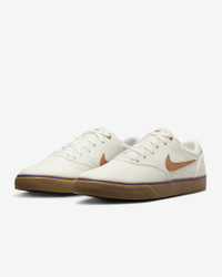 The Nike SB Chron 2 Canvas is the newest member of the Chron family. The revamped design includes a reshaped collar and heel for an improved fit—all while maintaining the comfort and performance you expect from Nike SB. Benefits - Canvas is flexible and breathable. - Foam cushions every step. - Vulcanized construction fuses the sole to the upper for a flexible feel. - Extended toe bumper adds durability. Product Details - Traditional lacing - Shown: Summit White/Summit White/Gum Light Brown/Monarch - Style: DM3494-107