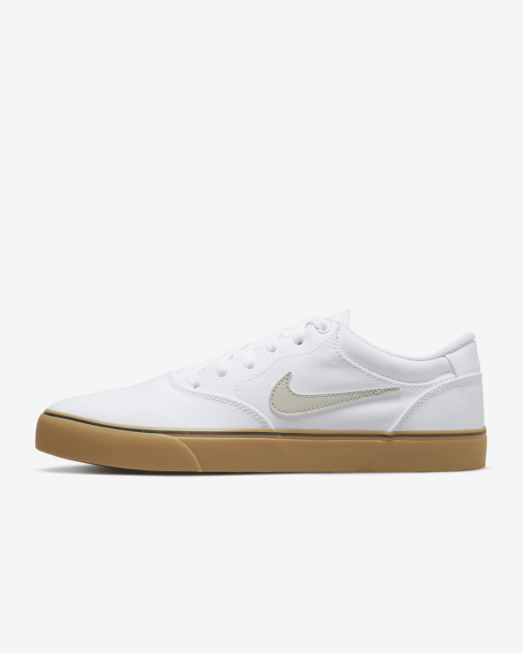The Nike SB Chron 2 Canvas is the newest member of the Chron family. The revamped design includes a reshaped collar and heel for an improved fit—all while maintaining the comfort and performance you expect from Nike SB. Benefits - Canvas is flexible and breathable. - Foam cushions every step. - Vulcanized construction fuses the sole to the upper for a flexible feel. - Extended toe bumper adds durability. Product Details - Traditional lacing - Shown: White/White/Gum Light Brown/Light Bone - Style: DM3494-105