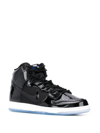SB Dunk High "Space Jam" sneakers Nike has bridged the gap between skateboarding and basketball yet again with this release. First presented in 2019, this SB Dunk High is also dubbed "Space Jam", offering a colourway inspired by Michael Jordan's original Air Jordan 11 model while the SB line celebrates all things streetwear and skate. Highlights - Black/concord purple/white - Leather - Panelled design - Branded insole - Ankle-length - Suede panelling - High-shine detailing - Pull-tab at the heel - These styles are supplied by a premium sneaker marketplace. stocking only the most sought-after footwear, they source and curate some of the most hard to find sneakers from around the world. Imported Composition Calf Leather 100%