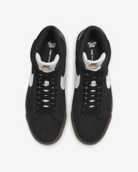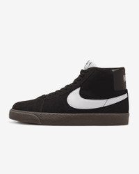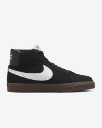 The Nike SB Zoom Blazer Mid takes a heritage design and tailors it to the needs of the modern skateboarder. Soft cushioning and a flexible sole work together to provide great boardfeel and traction. Benefits - Zoom Air unit offers responsive cushioning. - Mid-top collar provides ankle support. - Vulcanized construction fuses the sole to the upper for a flexible, broken-in feel. - Tacky rubber sole with herringbone pattern gives you multidirectional traction. Product Details - Leather or leather/textile depending on color - Shown: Black/Black/Sail/White - Style: 864349-010 SIZE & FIT For easier entry, we recommend unlacing the top 4 eyelets and sghtly loosening the laces farther down
