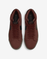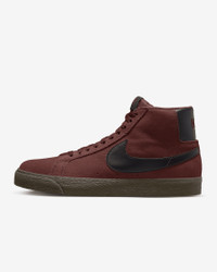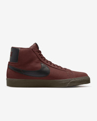 The Nike SB Zoom Blazer Mid takes a heritage design and tailors it to the needs of the modern skateboarder. Soft cushioning and a flexible sole work together to provide great boardfeel and traction. Benefits - Zoom Air unit offers responsive cushioning. - Mid-top collar provides ankle support. - Vulcanized construction fuses the sole to the upper for a flexible, broken-in feel. - Tacky rubber sole with herringbone pattern gives you multidirectional traction. Product Details - Leather or leather/textile depending on color - Shown: Oxen Brown/Oxen Brown/Gum Dark Brown/Black - Style: 864349-204 SIZE & FIT For easier entry, we recommend unlacing the top 4 eyelets and sghtly loosening the laces farther down