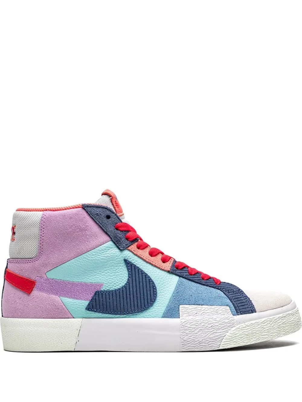 Nike SB gives the Blazer Mid a complete overhaul this season, drawing inspiration from collages with this pair. And you can really tell, since just about everything takes on a patchwork-like effect. The uppers, for example, are cut from leather and suede in a variety of hues — from blue to purple — while the Zoom Air-cushioned sole is two-tone and layered, as well. - Suede Uppers - Zoom Air Cushioning - Rubber Outsole - Style Code: DA8854-500