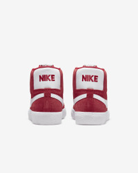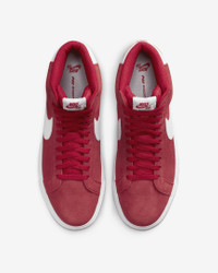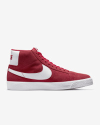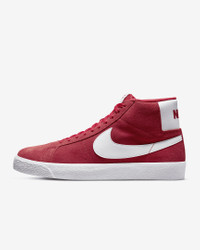 The Nike SB Zoom Blazer Mid takes a heritage design and tailors it to the needs of the modern skateboarder. Soft cushioning and a flexible sole work together to provide great boardfeel and traction. Benefits - Zoom Air unit offers responsive cushioning. - Mid-top collar provides ankle support. - Vulcanized construction fuses the sole to the upper for a flexible, broken-in feel. - Tacky rubber sole with herringbone pattern gives you multidirectional traction. Product Details - Leather or leather/textile depending on color - Shown: University Red/University Red/White/White - Style: 864349-602 SIZE & FIT For easier entry, we recommend unlacing the top 4 eyelets and sghtly loosening the laces farther down