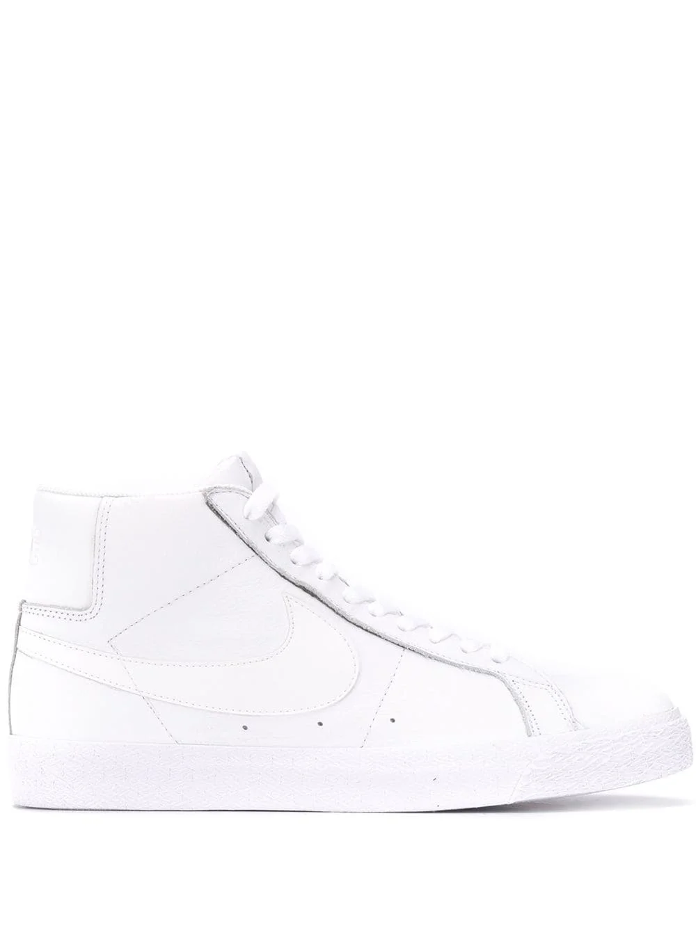SB Zoom Blazer Mid "Triple White" sneakers white leather round toe front lace-up fastening signature Swoosh logo detail logo patch to the rear flat rubber sole Imported Composition Leather 100% SIZE & FIT Measurement HEEL 1.18 in(3 cm) HEIGHT 3.93 in(10 cm) Sole height 0.98 in(2.5 cm)