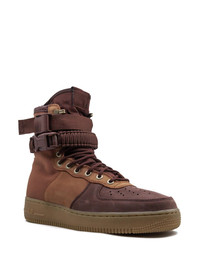 SF AF1 PRM sneakers Updated to beat the elements, the Nike SF Air Force 1 continues to draw inspiration from the military aesthetic. Ballistic nylon and nubuck combine to form the upper, while a sherpa fleece lining helps keep feet warm in cold conditions. The high-top shaft conceals a stash pocket and is tooled with adjustable straps, rope laces and a multi-loop counter system. A Nike Air unit is encapsulated in the gum rubber outsole, finishing the rugged shoe with a heritage hoops vibe. Imported Composition Other fibres 100%