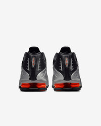 A recrafted version of the early 2000s icon, the Nike Shox R4 replicates the original with its futuristic design lines and performance-like cushioning. Nike Shox columns in the heel distribute weight to maximize comfort while providing a bold look on the streets. Benefits - Synthetic and textile upper is soft and durable. - Nike Shox technology features resilient, flexible columns that compress and regain shape for outstanding cushioning. - Modified, circular Waffle outsole offers great traction. - Laser perforations throughout provide ventilation. Product Details - Foam midsole - Rubber outsole - Not intended for use as Personal Protective Equipment (PPE) - Shown: Metallic Silver/Black/Picante Red/Metallic Silver - Style: HQ1988-002