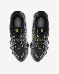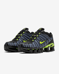 The Nike Shox TL brings back the 2003 icon, this time with fresh and vibrant colors. You still get the plastic overlays up top and, of course, the legendary full-length cushioning columns that are sure to turn heads once again. Benefits - Fabric and synthetic upper with plastic overlays is a near-exact replica of the 2003 Nike Shox TL. - Nike Shox cushioning provides distinctive impact absorption. - Molded overlays on the midfoot provide support and a snug fit. - TPU plate in the heel, between the midsole and the Nike Shox cushioning, helps provide lateral stability and support. Product Details - Designed in Europe - Rubber outsole - Shown: Thunderstorm/Black/Volt - Style: CI7692-400