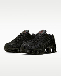 The Nike Shox TL takes mechanical cushioning to the next level. A recrafted version of the 2003 icon, it features breathable mesh in the upper and full-length Nike Shox technology for optimal impact absorption and a bold look on the streets. Benefits - Nike Shox technology combines resilient, flexible columns with moderator plates for outstanding cushioning that compresses and regains its shape. - A combination upper with a full TPU cage is a near-exact replica of the 2003 Nike Shox TL. - Molded overlays throughout the midfoot provide support and a snug fit. - A TPU plate in the heel between the midsole and Nike Shox technology helps provide lateral stability and support. - A foam midsole provides lightweight cushioning. - Non-marking, solid rubber in a modified waffle outsole gives great traction and durability. Product Details - Synthetic and textile upper - Not intended for use as Personal Protective Equipment (PPE) - Shown: Black/Metallic Hematite/Max Orange/Black - Style: AV3595-002