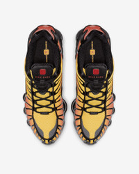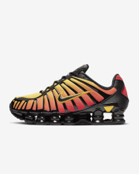 The Nike Shox TL takes mechanical cushioning to the next level. A recrafted version of the 2003 icon, it features breathable mesh in the upper and full-length Nike Shox technology for optimal impact absorption and a bold look on the streets. Benefits - Nike Shox technology combines resilient, flexible columns with moderator plates for outstanding cushioning that compresses and regains its shape. - A combination upper with a full TPU cage is a near-exact replica of the 2003 Nike Shox TL. - Molded overlays throughout the midfoot provide support and a snug fit. - A TPU plate in the heel between the midsole and Nike Shox technology helps provide lateral stability and support. - A foam midsole provides lightweight cushioning. - Non-marking, solid rubber in a modified waffle outsole gives great traction and durability. Product Details - Synthetic and textile upper - Not intended for use as Personal Protective Equipment (PPE) - Shown: Black/Amarillo/University Red/Black - Style: AV3595-004