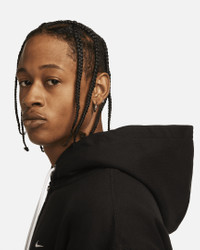 A true classic, our Solo Swoosh full-zip hoodie is made with supersoft fleece for smooth, easy comfort. The simplicity of the design lets you pair it up or down for clean, casual daily wear. Benefits - The Solo Swoosh collection nods to the sports and fashion of the 1990s. and our own In an era of wild and audacious design, the simplicity of the Swoosh was a breath of fresh Air. - French terry fleece is brushed for smooth comfort against your skin. - Roomy fit gives you some extra space through your chest, body and hips for easy comfort and layering. - Full-zip design with sturdy metal zipper lets you adjust your style and coverage with ease. Product Details - Hood with drawcord - Ribbed cuffs and hem - Split Kangaroo pocket - 84-85% cotton/15-16% polyester - Material percentages may vary. Check label for actual content. - Machine wash - Imported - Shown: Black/White - Style: DR0403-010 SIZE & FIT Female model is wearing size S and is 5'8"173cm Male model is wearing size M and is 6'1"185cm Loose fit: roomy and relaxed Fits large; we recommend ordering a size down