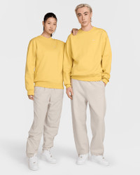 Celebrate the power and simplicity of the Swoosh. This warm fleece crew is made with some extra room through the shoulders, chest and body for easy comfort and laid-back, nostalgic style. Stretchy ribbed openings help hold the crew in place when you move and seal in your body heat when the weather cools. Benefits - Our midweight brushed fleece reminds us of our favorite fuzzy blanket. Supersoft and cozy, with a slightly structured fit, it’s a perfect layer to wear indoors or outdoors. - Dropped shoulders and a roomy fit let you move freely and layer with ease. - Thick, stretchy ribbing at the collar, cuffs and hem helps seal in your warmth and elevate the finish. Product Details - Embroidered Swoosh at left chest - Body: 84-85% cotton/15-16% polyester. Rib: 98% cotton/2% spandex. - Material percentage may vary. Check label for actual content. - Machine wash - Imported - Shown: Saturn Gold/White - Style: DX1361-700 SIZE & FIT Female model is wearing size S and is 5'11"180cm Male model is wearing size M and is 6'2"188cm <p><p> Big & Tall model is wearing size 3XL and is 6'5"196cm Loose fit: roomy and relaxed Fits large; we recommend ordering a size down