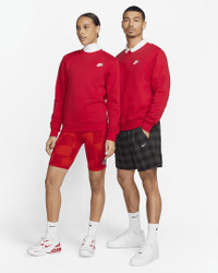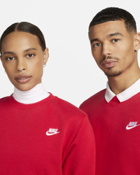 A closet staple, the Nike Sportswear Club Fleece Crew combines a classic embroidered logo on the left chest with the soft comfort of fleece for an elevated everyday look. Product Details - Standard fit for a relaxed, easy feel - Fabric: 80-82% cotton/18-20% polyester - Machine wash - Imported - Note: Material percentages may vary depending on factory. Check label for actual content. - Shown: University Red/White - Style: BV2662-657 SIZE & FIT Female model is wearing size XS and is 5'9"175cm Male model is wearing size M and is 5'11"180cm Standard fit: easy and traditional