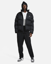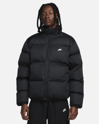 Bring the warmth in this clean, mid-loft puffer design. This Nike Club puffer is equipped with PrimaLoft® Thermoplume insulation and water-repellent ripstop fabric to help you fight off the chill from those cold, rainy days. Thin elastic trim at the hem and cuffs helps hold in body heat, while working to keep the cool air and moisture out. More Benefits - Full-zip design lets you adjust your style and coverage withe ease. - Zippered hand pockets give you a secure place to store your valuables. Product Details - Stand collar - Embroidered Nike Futura on left chest - Body/Lining/Fill: 100% polyester. - Machine wash - Imported - Shown: Black/White - Style: FB7368-010 SIZE & FIT Big & Tall model is wearing size 2XL and is 6'2"188cm Loose fit: roomy and relaxed Fits large; we recommend ordering a size down
