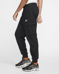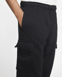 The Nike Sportswear Club Fleece Cargo Pants put an athletic spin on the classic cargo style. Made from soft brushed fabric, they're comfortable for all-day wear. Product Details - Body: 80% cotton/20% polyester. Side pocket knuckle side: 100% cotton. - Machine wash - Imported - Shown: Black/Black/White - Style: CD3129-010 SIZE & FIT Standard fit: easy and traditional