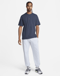 The Nike Sportswear Premium Essentials T-Shirt has a loose fit for a carefree, comfortable look. Its heavyweight organic cotton fabric feels thick and soft. This product is made with at least 75% organic cotton fibers. Benefits - Loose-fitting design features dropped shoulders and room through the chest and shoulders for a relaxed look and feel. - Heavyweight cotton jersey has a stiff drape and dry hand for a crisp, thick feel. - Embroidered logo front and center makes a subtle statement. Product Details - Loose fit for a roomy feel - 100% cotton - Machine wash - Imported - Woven label - Shown: Thunder Blue - Style: DO7392-437 SIZE & FIT Model is wearing size M and is 6′2″188cm Loose fit: roomy and relaxed Fits large; we recommend ordering a size down