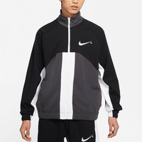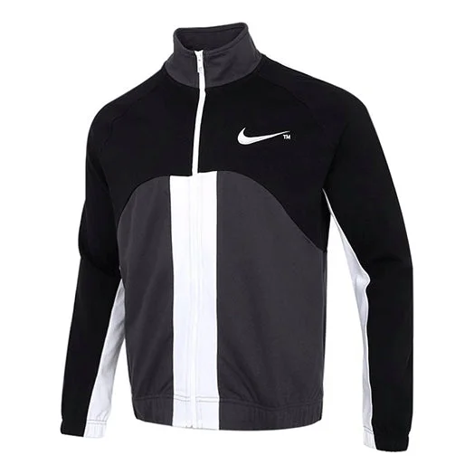 Nike Sportswear Swoosh Contrast Color Stitching Knit Stand Collar Logo Jacket Black DD5982-010
