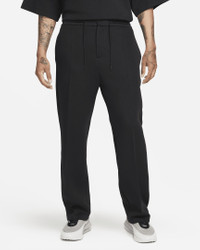 These tailored pants are everything you love about our smooth, comfy Tech Fleece in a roomy, inspired design. Traditional tailored details like pleating down the front and zipper fly front closure combine with the drawcord waistband and soft fleece fabric for a mix-and-mash look where old meets new. Our premium, smooth-on-both-sides fleece feels warmer and softer than ever, while keeping the same lightweight build you love. Pair them up with our Tech Fleece Reimagined Shacket and escape into the future of comfort. Product Details - Open hem - Hand pockets - Back snap pocket - Knockout Swoosh logo at back right pocket - Body: 53% cotton/47% polyester. Side Pocket Knuckle Side: 100% cotton. Back Pocket: 100% cotton. - Machine wash - Imported - Shown: Black/Black - Style: FB8163-010 SIZE & FIT Model is wearing size M and is 6′1″185cm Loose fit: roomy and relaxed Fits large; we recommend ordering a size down
