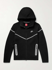 This hoodie is part of Nike's 'Sportswear' line of everyday basics. It’s made from cotton-blend Tech Fleece and detailed with a logo on the chest and two handy zipped pockets with reflective details. Size & Fit - Fits true to size. Take your normal size - Regular fit; designed for movement - Mid-weight, stretchy fabric - Model is shown wearing a M - Model measures: chest 38"/ 96cm, height 6'2"/ 188cm Details & Care - Black cotton-blend Tech Fleece - Two-way zip fastening - 53% cotton, 47% polyester - Machine wash - Designer colour: Black/ Bemis Silver