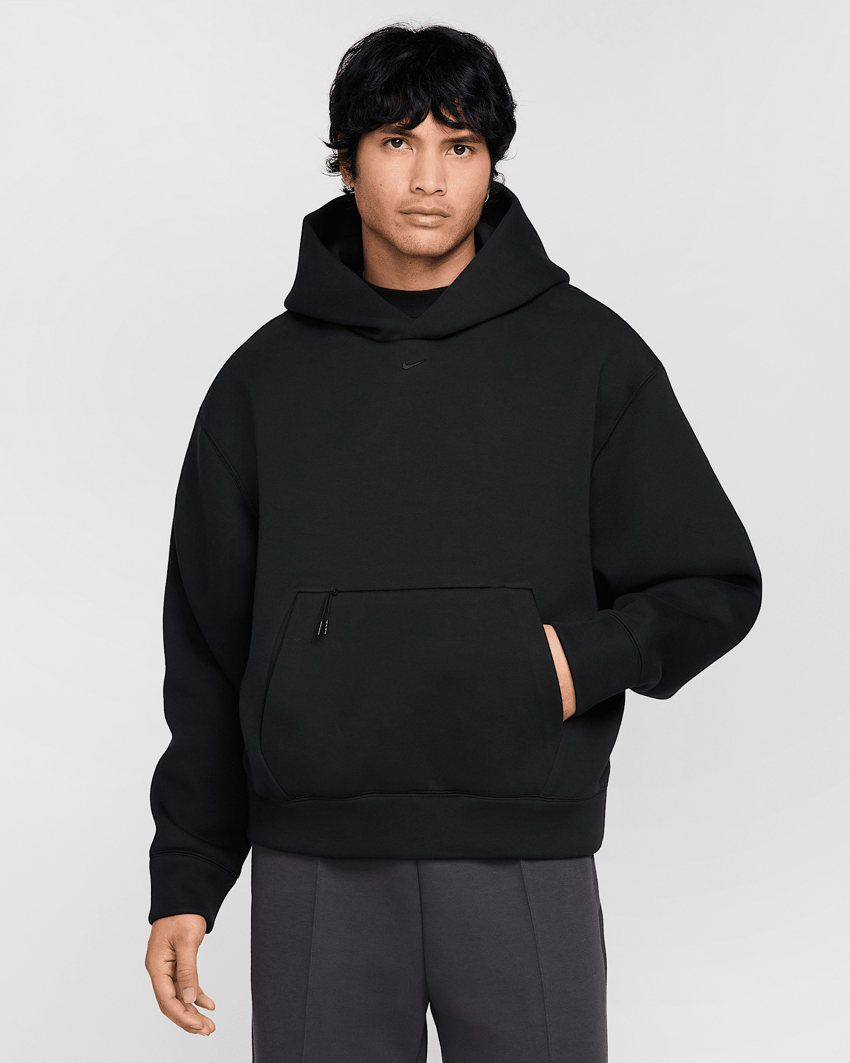We took our iconic smooth-on-both-sides fleece and added extra weight for more structure and warmth. We paired that with an extra roomy, oversized fit to create a new take on the classic hoodie. Benefits - Our premium, smooth-on-both-sides fleece feels warmer and softer than ever, while keeping the same lightweight build you love. - The oversized fit is slightly longer and extra roomy through the body. - The pouch pocket has a zipper at the top with a hidden pocket for your phone. Product Details - 62% Polyester/38% Cotton - Machine wash - Imported - Shown: Black/Black - Style: HM9789-010 SIZE & FIT Model is wearing size M and is 6′0″183cm Big & Tall model is wearing size 3XL and is 6'3"191cm Oversized fit: exaggerated and spacious