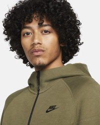 Blending 2 of our most iconic looks, this full-zip hoodie draws design inspiration from our timeless Windrunner jacket as well as our Tech Fleece jacket. It's designed to feel relaxed through the shoulders, chest and body for an athletic fit you can layer. Our premium, smooth-on-both-sides fleece feels warmer and softer than ever, while keeping the same lightweight build you love. Benefits - Subtle Windrunner lines nod to the classic running jacket from the late '70s. - Dropped shoulders and paneled sleeve design helps you move with less restriction. - Partial elastic hem helps seal in your warmth and hold the hoodie in place when you move. - Zippered hand pockets feature the signature Tech Fleece taped pocket surround. - Full-zip design with a scuba hood lets you adjust your style and coverage. Product Details - Nike Futura logo at left chest - Body/Hood Lining: 53% cotton/47% polyester. Pocket Bag Knuckle Side: 100% cotton. - Machine wash - Imported - Shown: Medium Olive/Black - Style: FB7921-222 SIZE & FIT Model is wearing size M and is 6′1″185cm Standard fit: easy and traditional If you typically wear men's styles, please select your usual size. If you typically wear women's styles, please size down.