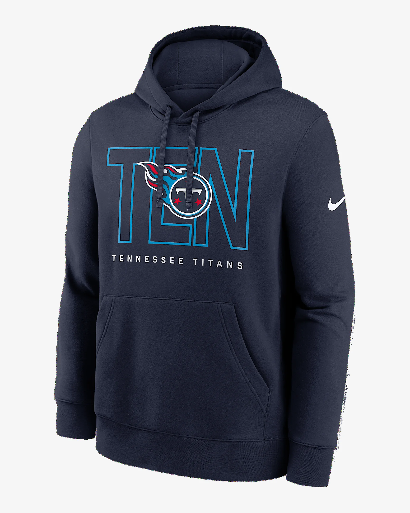 Designed with bold team graphics, this Busted Play Club Hoodie features a cozy fleece lining to help you comfortably support the Tennessee Titans in chilly temperatures. Product Details - Front pocket - Hood with drawstring - 82% cotton/18% polyester - Machine wash - Imported - Shown: Navy - Style: NKDK41S8F-E7N