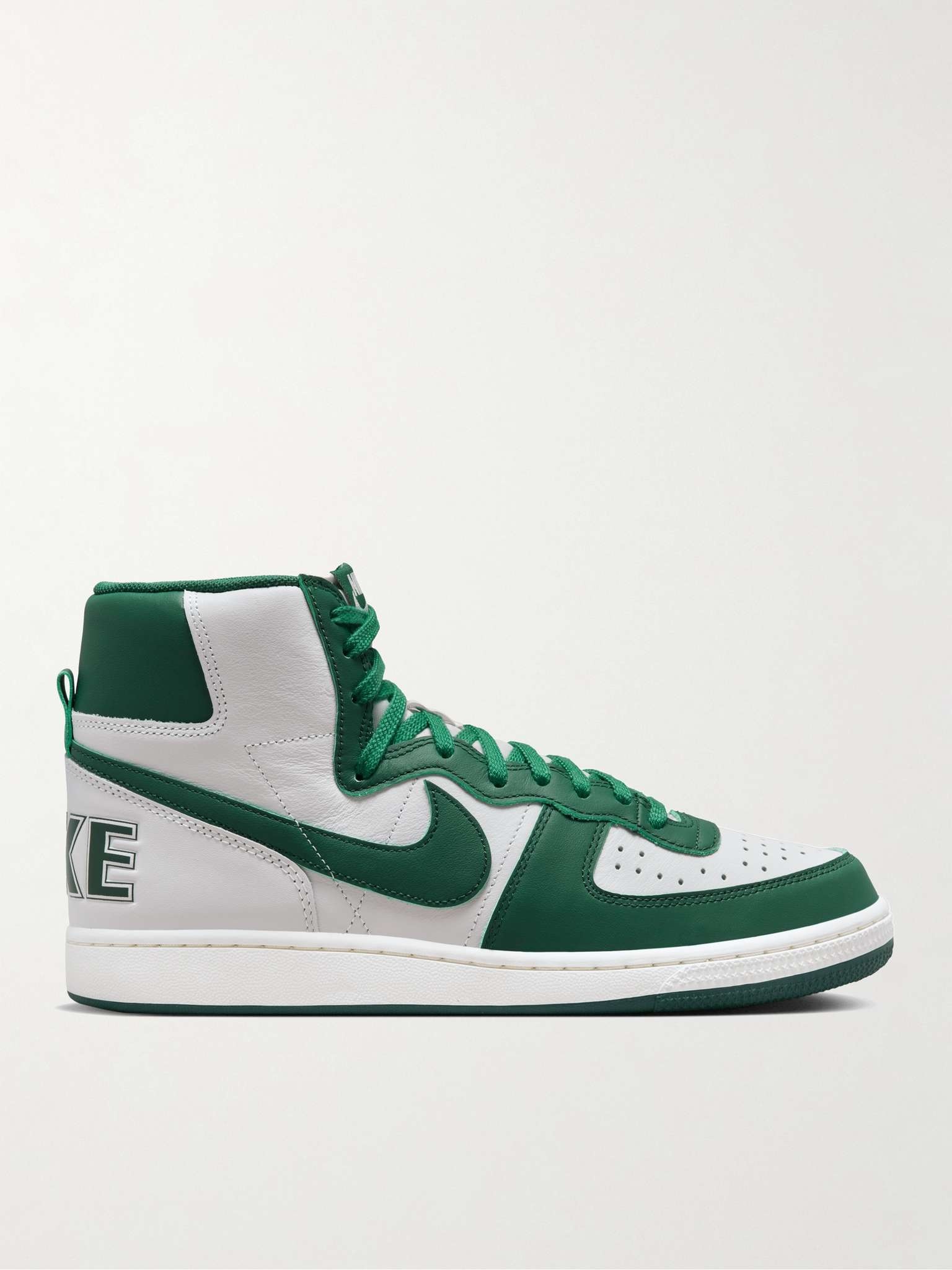 Nike's 'Terminator' sneakers first debuted in 1985 - this iteration is panelled from supple leather in a green and light-grey colourway as an ode to the Georgetown Hoyas basketball team who famously adopted the OG model. They're detailed with oversized branding across the heel counters and set on comfortable rubber soles. Size & Fit - US 4 = UK 3/EU 36 - US 4.5 = UK 3.5/EU 36.5 - US 5 = UK 4/EU 37.5 - US 5.5 = UK 4.5/EU 38 - US 6 = UK 5/EU 38.5 - US 6.5 = UK 5.5/EU 39 - US 7 = UK 6/EU 40 - US 7.5 = UK 6.5/EU 40.5 - US 8 = UK 7/EU 41 - US 8.5 = UK 7.5/EU 42 - US 9 = UK 8/EU 42.5 - US 9.5 = UK 8.5/EU 43 - US 10 = UK 9/EU 44 - US 10.5 = UK 9.5/EU 44.5 - US 11 = UK 10/EU 45 - US 11.5 = UK 10.5/EU 45.5 - US 12 = UK 11/EU 46 - US 12.5 = UK 11.5/EU 47 - US 13 = UK 12/EU 47.5 - US 13.5 = UK 12.5/EU 48 - US 14 = UK 13/EU 48.5 Details & Care - Green and light-grey leather - Lace-up - Designer colour: Swan/ Noble Green-Sail-Washed Green - Style number: FD0650-100 - Nike follows its own size guide, therefore the size stated on the box will differ from the one provided in our size chart. To receive your correct fit, please refer to Size & Fit notes - This item has been imported