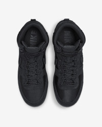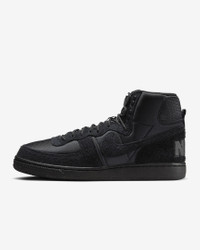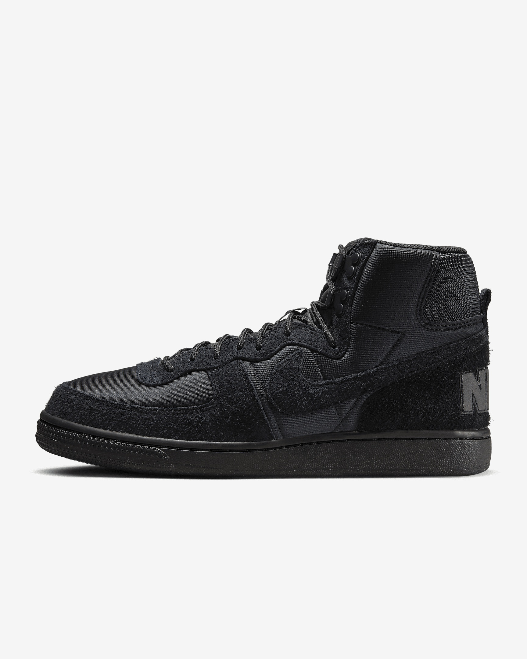 Bird lovers who hoop. Off-court stylists who take their game through stands of old-growth trees. Multifaceted and ready for whatever speaks to you, this fresh take on the Terminator lets you bridge worlds. Pulling inspiration from the great outdoors, your favorite retro hoops look gets a hiking boot twist. Hairy suede overlays nod to the wilderness beyond, while neoprene-like underlays keep 'em breezy to wear. Oh, and the all-black upper gives your style the perfect edge. Lace up and see where the day takes you. Benefits - Neoprene-like upper with suede overlays stands up to the demands of your day. - Padded, high-top collar adds an old-school look that feels great. - Rubber outsole gives you durable traction. Product Details - 2 sets of laces - Woven tongue label - Traditional lacing - Not intended for use as Personal Protective Equipment (PPE) - Shown: Black/Black/Black - Style: FJ5464-010