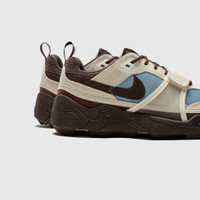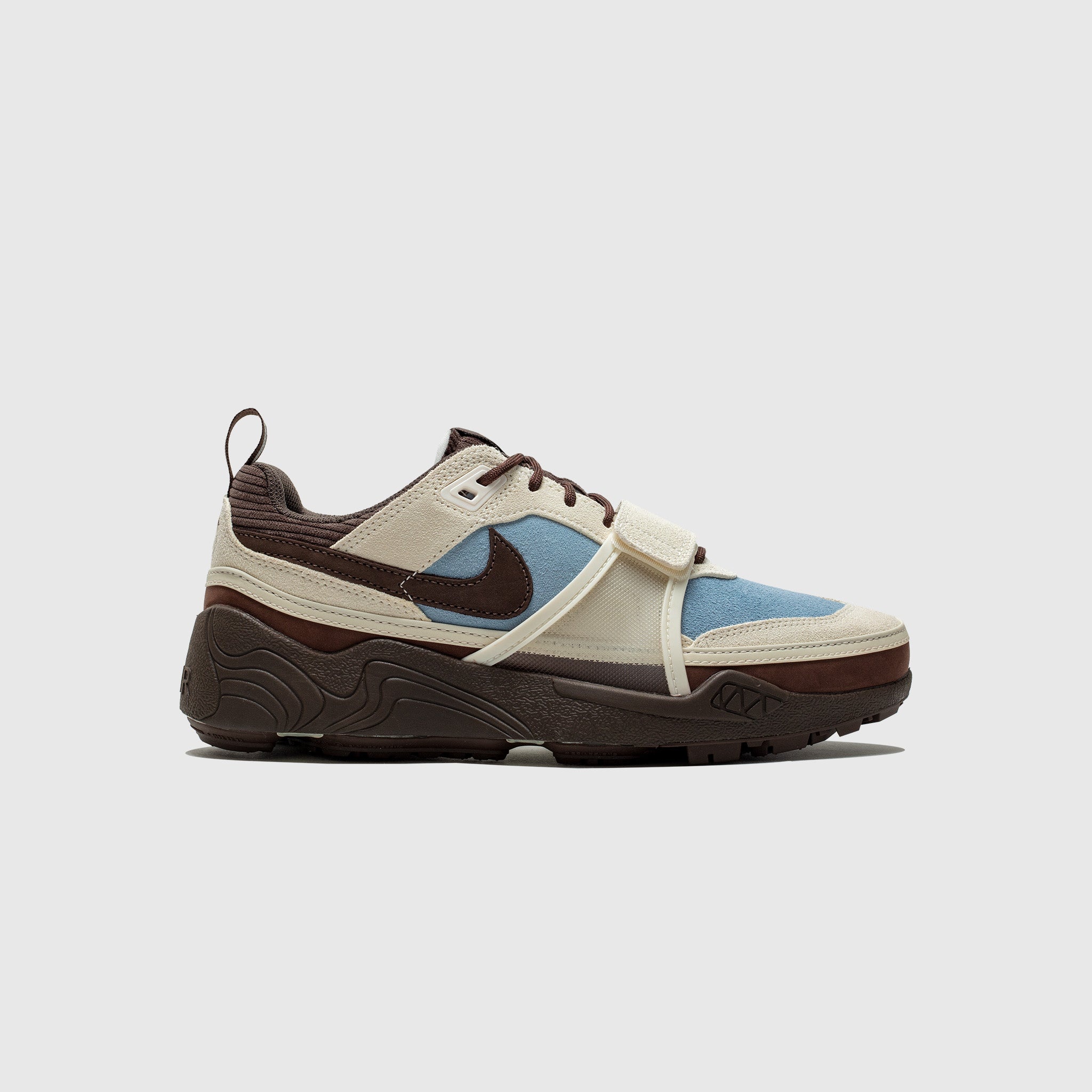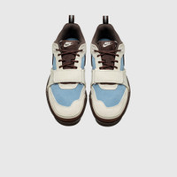 - HQ3072 400 - Leche Blue/Baroque Brown-Pale Ivory - Travis Scott's Field Jaxx mixes the DNA of the Land Shark 90s model with signature details from the internationally-renowned pop star in a Pale Ivory and Leche Blue colorway. - Leche Blue suede upper - Pale Ivory suede overlays - Baroque Brown mesh tongue with "NIKE SWOOSH" tongue tag - Baroque Brown suede swoosh on the lateral and medial sidewall - Pale Ivory suede forefoot strap - Baroque Brown logo on the back heel - Baroque Brown rubber midsole - Baroque Brown rubber outsole