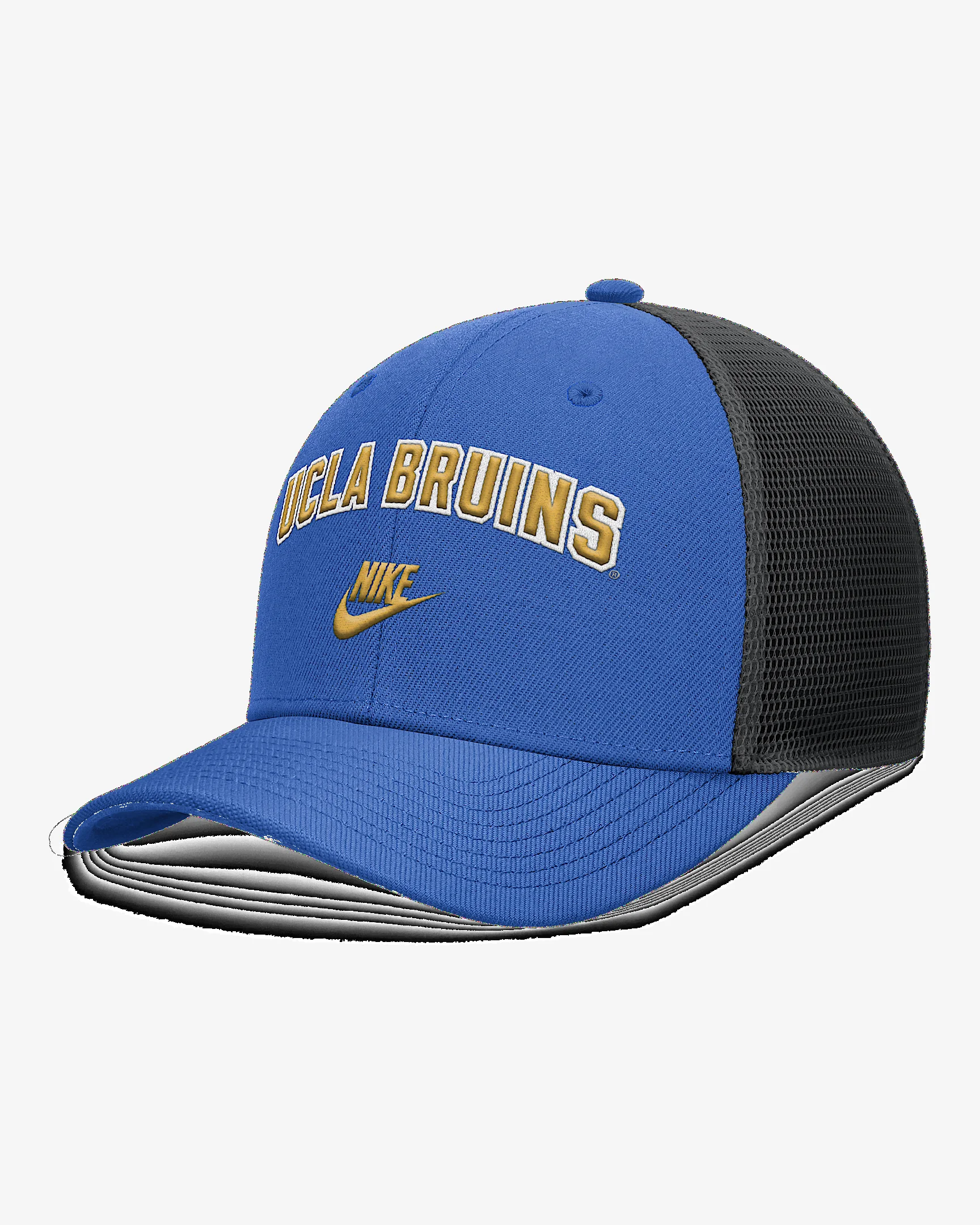 Featuring a 2-tone design and embroidered team details, the Legacy Arch Rise Hat lets you effortlessly showcase support for UCLA. Its sweat-wicking technology and trucker construction with four mesh panels help provide a breathable, comfortable feel. Benefits - Nike Dri-FIT technology moves sweat away from your skin for quicker evaporation, helping you stay dry and comfortable. - Snapback closure provides a customizable fit. Product Details - 6-panel design - Embroidered eyelets - 100% polyester - Hand wash - Imported - Shown: Blue - Style: NC130CYGUCV-DUH