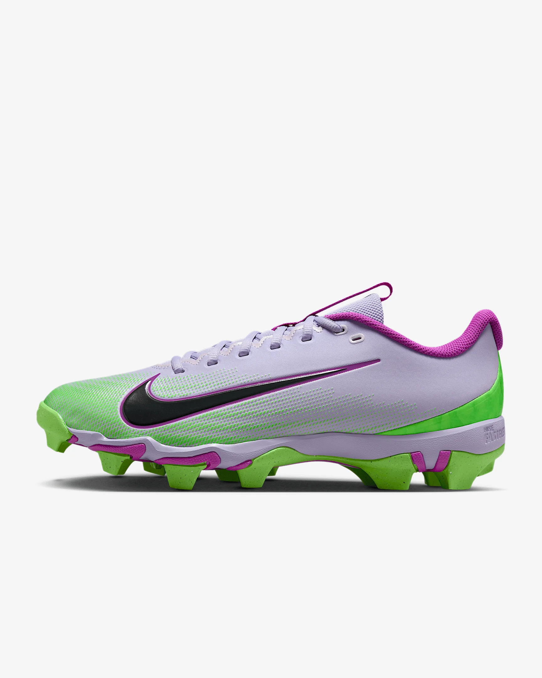 Stay one step ahead of your opponent in the Vapor Shark 3. The outsole has Nike Fastflex technology to help you move with ease while hitting the gas and changing direction on a dime for all those game-changing plays. Benefits - Nike Fastflex technology with rubber studs creates flexibility and traction for bursts of speed, quick cuts and sudden stops. - Synthetic leather on the upper is durable and easy to clean. Product Details - Shown: Hydrangeas/Green Strike/Doll/Dark Smoke Grey - Style: HJ4575-500