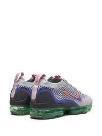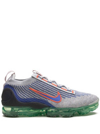 Vapormax 2021 Flyknit sneakers Nike's Air VaporMax 2021 now appears in a grey colour - with blue, orange and green accents. Here, the Flyease tightening system has been removed for a traditional lacing system and the heel clips and toe cap now have a thicker Swoosh on the panels. The usual Flyknit on the upper and the VaporMax Air unit stay the same. Highlights - Grey - Flyknit construction - Signature swoosh logo detail - Round toe - Front lace-up fastening - Double pull-tab at the opening - Branded insole - Signature one-piece air vapormax sole - These styles are supplied by a premium sneaker marketplace. stocking only the most sought-after footwear, they source and curate some of the most hard to find sneakers from around the world. Imported Composition Sole: Rubber 100% Outer: Fabric 100%