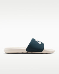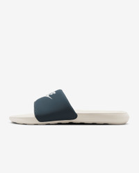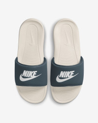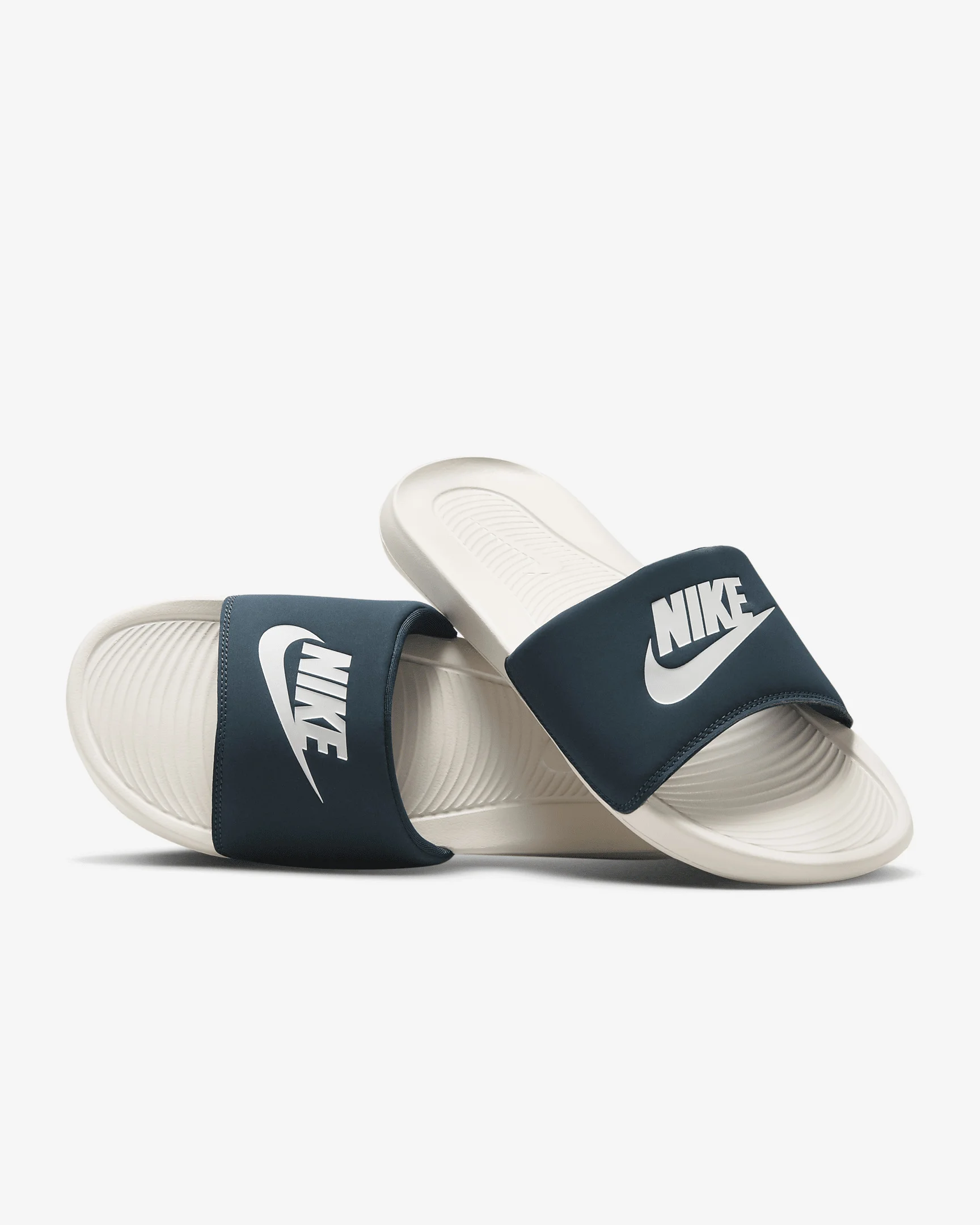 From the beach to the bleachers, the Victori One is a must-have slide for everyday activities. Subtle yet substantial updates like a wider strap and softer foam make lounging easy. Go ahead—enjoy endless comfort for your feet. Benefits - Soft foam adds responsiveness and cushioning. - Textured pattern on the contoured footbed adds grip to help your feet stay in place. - Rolled edges on the padded strap creates a smooth, comfortable feel. - Wider strap provides additional space to help accommodate more sizes. - Outsole pattern is designed for multi-surface traction. Product Details - Shown: Armory Navy/Light Orewood Brown/Sail - Style: CN9675-403