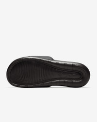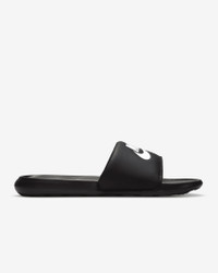 From the beach to the bleachers, the Nike Victori One is a must-have slide for sunny days. Lightweight and easy to wear (or pack for your vacay), it's soft, responsive foam makes lounging easy. Benefits - Soft foam adds unbelievable responsiveness and cushioning. - Contoured footbed cradles your foot for support while its grippy pattern helps keep your foot in place. - Padded strap with rolled edges creates a smooth, comfortable feeling that lasts. - Wider strap provides additional space to help accommodate more sizes. - Outsole pattern is designed for traction from the streets to beaches. Product Details - Shown: Black/Black/White - Style: DR2018-001 SIZE & FIT Fits small; we recommend ordering a half size up