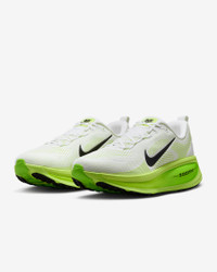 Maximum cushioning in the Vomero provides a comfortable ride for everyday runs. Our softest, most cushioned ride has lightweight ZoomX foam stacked on top of responsive ReactX foam in the midsole. Plus, a redesigned traction pattern offers a smooth heel-to-toe transition. Product Details - Weight: Approx. 325g/11.5oz (Men's US 10) - Heel-to-toe drop: 10mm - MR-10 Last - Our best, most consistent fit - Reflective details - Not intended for use as Personal Protective Equipment (PPE) - Shown: White/Electric Green/Volt/Black - Style: HM6803-100
