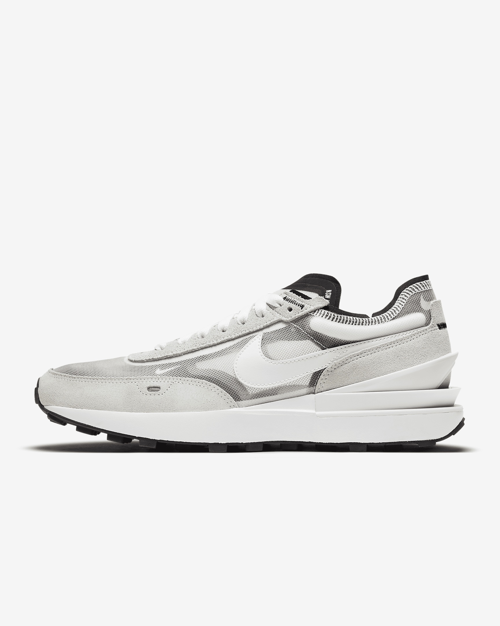 Bringing a new look to the iconic Waffle franchise, the Nike Waffle One balances everything you love most about heritage Nike running with fresh innovations. Its new durable plastic heel clip adds energy while a mixture of transparent mesh and luscious suedes get you ready for summertime. The new springy midsole features the classic wedge shape while the updated Waffle outsole provides a level of support and traction you have to feel to believe. Benefits - Mixed upper features transparent mesh and soft suedes, adding dimension and texture to the shoe while keeping it airy. - Dual stacked midsole keeps the classic wedge shape of the Waffle franchise for a soft, cushioned ride. - New TPU heel clip creates a dynamic look that adds support and energy while the zigzag stitching mixes DIY appeal with urban edginess. - Iconic rubber Waffle outsole has been updated with new molded lugs for added support, traction and durability. - Low-cut collar features soft edges for a sleek look that feels comfortable. Product Details - Rubber sole - Not intended for use as Personal Protective Equipment (PPE) - Shown: Summit White/Black/Orange/White - Style: DA7995-100