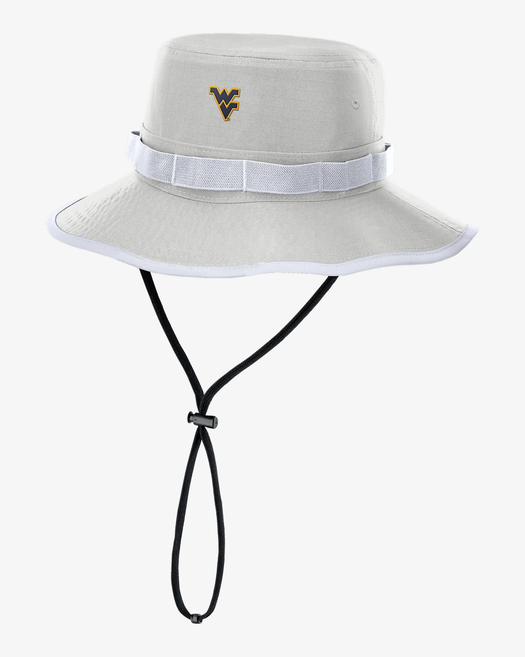 The West Virginia Sideline Apex Gameday Boonie Hat is perfect for the outdoors with a classic bucket design and wraparound brim providing 360-degree coverage. It pairs durable ripstop fabric with sweat-wicking technology for a cool, dry accessory. Benefits - Nike Dri-FIT technology moves sweat away from your skin for quicker evaporation, helping you stay dry and comfortable. - Adjustable chin strap with toggle helps keep the hat secure and in place. Product Details - 100% polyester - Hand wash - Imported - Shown: Grey - Style: NC1B0CQXWVN-CVH